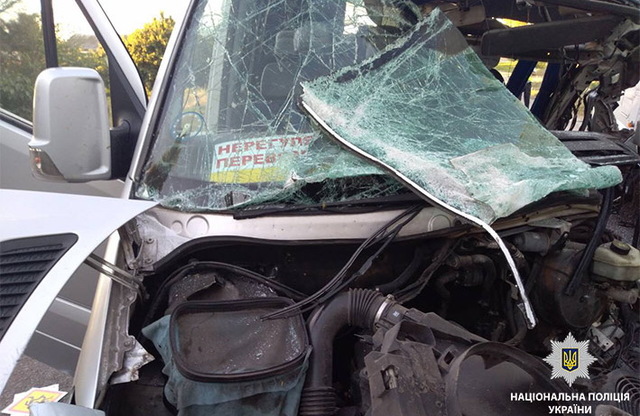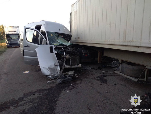 Как сообщает пресс-служба Национальной полиции, предварительно, водитель «Mercedes Sprinter» нарушил правила дорожного движения, выехал на полосу встречного движения и допустил столкновение с грузовиком «Freightliner».