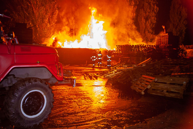 10 сентября на улице Шинной начался пожар на складе автобазы №5, где хранились деревянные поддоны. На место направили несколько экипажей патрульной полиции, а ликвидацией пожара занималось 3 бригады спасателей.