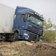 Водитель Daewoo тоже захотел перестроиться левее, но грузовик уже набрал скорость. Чтобы избежать столкновения с автомобилем, водитель фуры ударился об бордюр и в неуправляемом состоянии слетел в кювет.