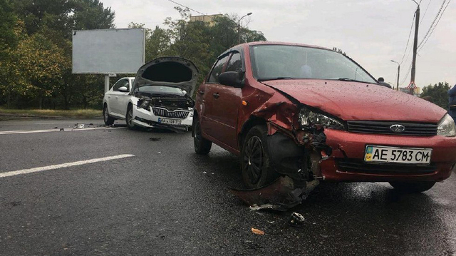 В Днепре на Победе столкнулись Lada и Skoda: пострадала женщина