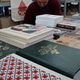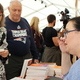«Вы уже получили тактильное удовольствие? – спрашивает издатель Алексанр Савчук и протягивает книгу с вышитой обложкой. – А вот легкая книга для женщин. Она им подходит по размеру, остальные наши книги тяжелые, под силу только мужчинам (издатель шутит о размерах книг, авт)».