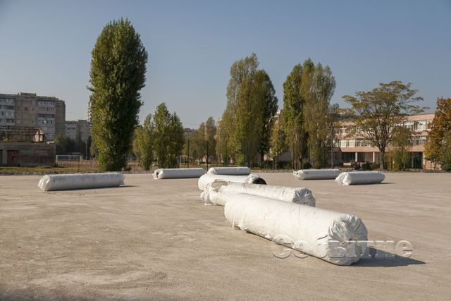 Подготовительные работы уже завершены. Сегодня, 10 октября, здесь началась укладка первых слоев искусственного покрытия футбольного поля.