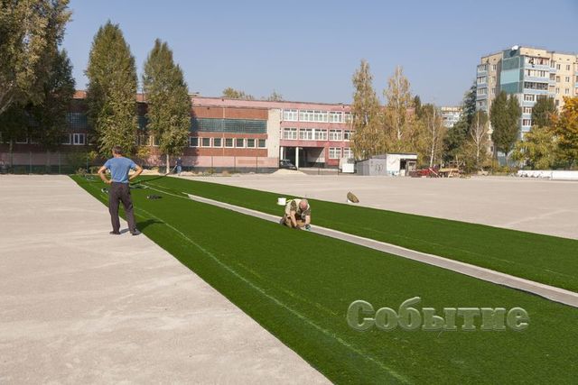 Всего предстоит покрыть более 700 м кв. спортивного объекта. Само покрытие высококачественное, высоковорсное, произведено немецкой фирмой «Polytan». Его привезли из Германии. Предназначено для игр на профессиональном уровне.