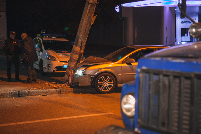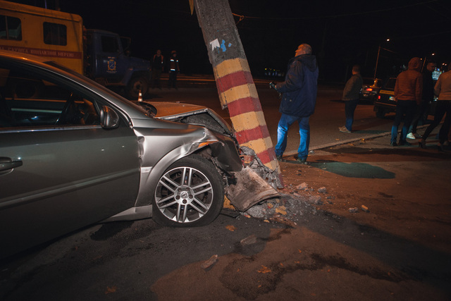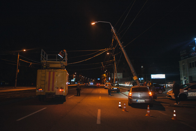 11 октября на проспекте Богдана Хмельницкого произошла авария: автомобиль Opel въехал в электроопору. Бетонная конструкция накренилась, потянув за собой провода.