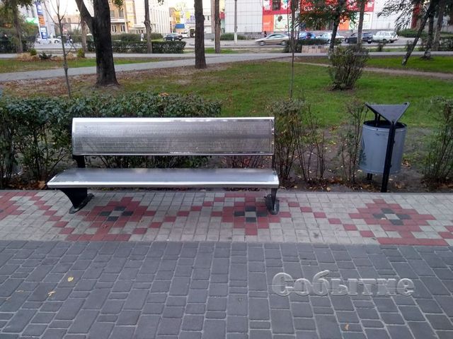 Демонтированные ранее скамейки из дерева заменили на металлические. Всего установлено 10 новых мест для сидения, рядом с каждым есть и новая металлическая урна.