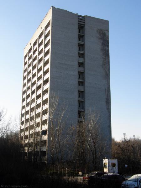 В целом же история этой высотки – одна из самых печальных в Днепре. Дом был построен и заселен в 1986 году. Но уже через десять лет из-за просадки грунта на склоне балки его пришлось отселять. С тех пор в этом пустом здании (как и в соседнем доме по ул. Нахимова, который тоже был отселен и пару лет назад уже разобран) обитали только бомжи. Да еще наведывались экстремалы. Прыжки и хождения по заброшенной высотке привели к нескольким трагедиям…