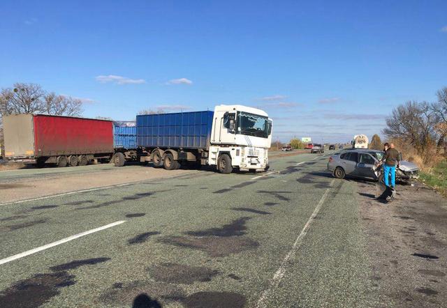 6 ноября под Днепром — в районе поселка Песчанка — автомобиль Renault столкнулся с грузовиком. От удара легковушку вынесло на встречную полосу движения, а большегруз развернуло поперек дороги.