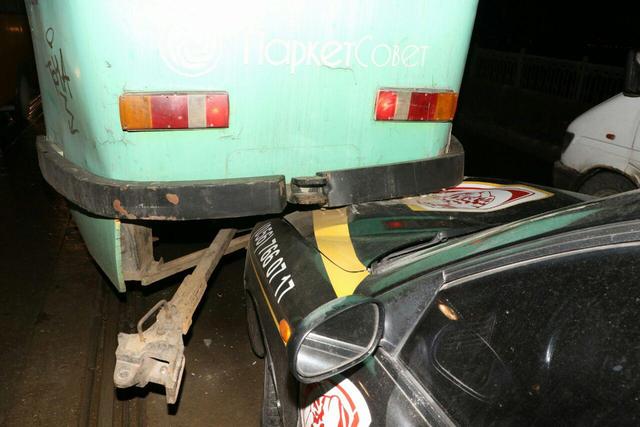 3 декабря на Старом мосту автомобиль охранной фирмы «Гуард» въехал в трамвай. Из-за аварии образовалась большая пробка, которая тянется от заезда.