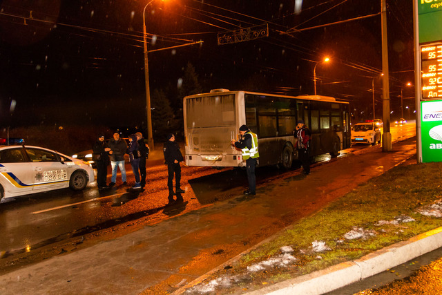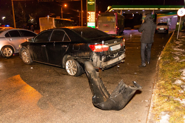 В Днепре на Набережной возле заправки «Юкон» столкнулись автобус с пассажирами, Nissan и Toyota