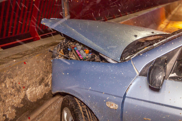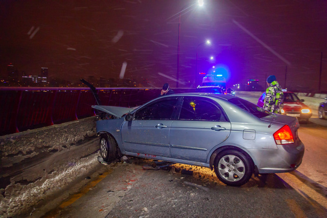 25 декабря, около 23:40, на Центральном мосту случилось ДТП. Автомобиль Kia влетел в отбойник.