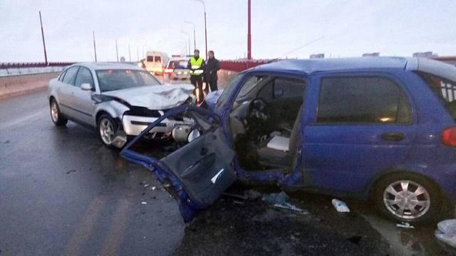 27 декабря на Центральном мосту лоб в лоб столкнулись Volkswagen Passat и Daewoo Matiz. Из-за аварии движение автомобилей идет только по одной полосе, образовалась огромная пробка.