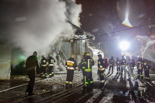Бригады ГСЧС выехали на производство еще в 20:49 вчерашнего дня — 26 декабря. Ситуация сложилась довольно сложная — в подвале одноэтажного здания загорелась груда подсолнечного жмыха, который является легковоспламеняющимся продуктом. Тот факт, что огонь быстро распространялся по помещению, как и то, что температура на производстве в целом стала невыносимо высокой, значительно затрудняло тушение.