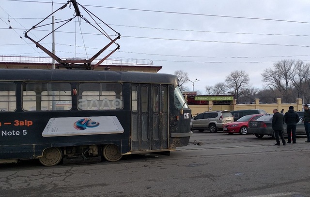 В Днепре на Шмидта столкнулись Skoda и ВАЗ: движение электротранспорта парализовано