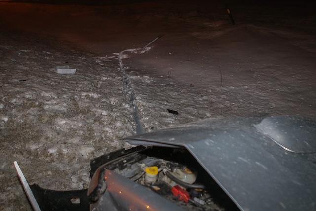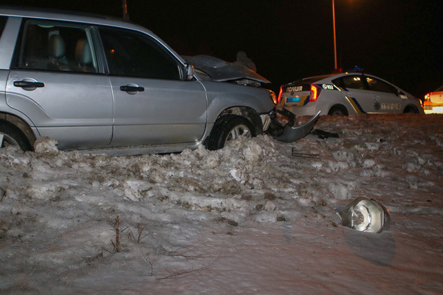 В Днепре от удара с Hyundai автомобиль Subaru вылетел на обочину и повалил столб