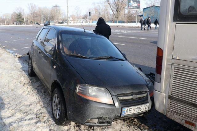 В это время по встречной полосе со стороны центра ехал автомобиль Chevrolet и Daewoo Lanos зацепил его. В результате этого Chevrolet откинуло в стоящий на остановке 120-й автобус. По предварительной информации, в аварии никто не пострадал.