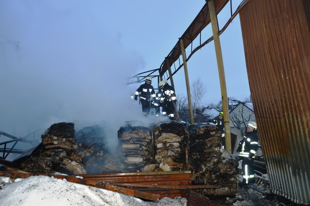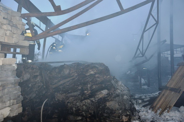 Пожар возник на территории общества с ограниченной ответственностью. Горел прессованный картон на открытой территории. Общая площадь пожара составляет 72 м2.