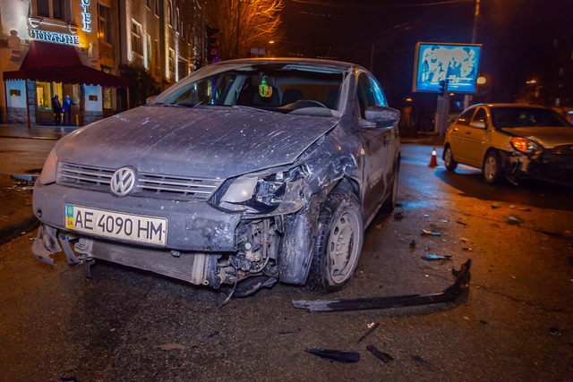3-го февраля, около 22:57, на проспекте Дмитрия Яворницкого случилось ДТП. Столнкулись Volkswagen и Hyundai.