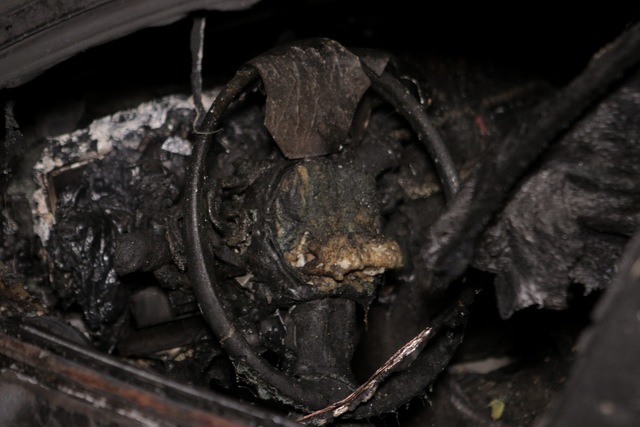 Известно, что Mazda стояла здесь на кирпичах — накануне пожара неизвестные порезали ей шины. Сегодня же — около 18:50 — автомобилю пришлось страдать снова.