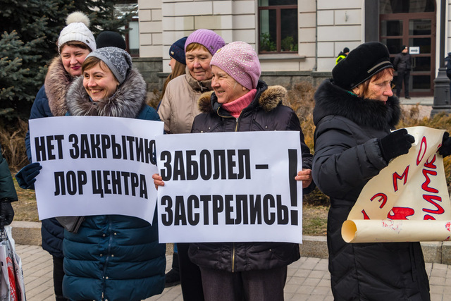 «Мы ежедневно проводим десятки сложнейших операций, работаем с тяжелыми пациентами, город не может остаться без такой важной помощи. Объединять больницу с онкоцентром нельзя, потому что инфекционные заболевания, которые встречаются в лор-отделении могут оказаться смертельными для онкобольных. Кроме того, закрытие больницы может повлечь за собой увольнения», — рассказала Анна Гармаш, операционная медсестра.На митинг протестующие вышли подготовленными. У каждого были плакаты с фразами «Заболел — застрелись», «Спасибо за поддержку», «Не дайте похоронить себя живьем» и прочими. Мнения прохожих разделились: кто-то поддержал медиков, а кто-то искренне не понимал «кипиша вокруг этого вопроса».