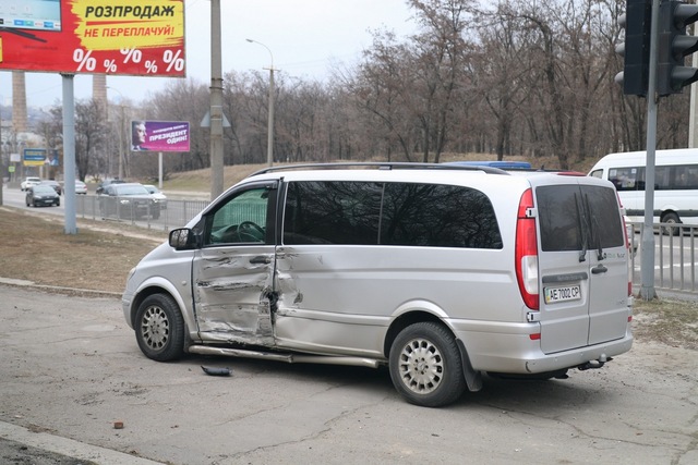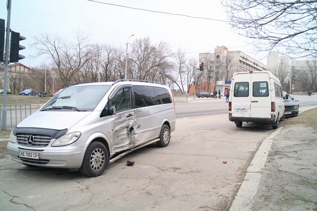 Инцидент произошел около 13:00 напротив областного перинатального центра. Известно, что серый Vito спускался вниз по Космической и пошел на разворот, когда по встречной полосе движения, двигаясь также вниз, черный Vito ударил его в бок. От удара автомобили отлетели на несколько метров дальше и зацепили маршрутное такси.