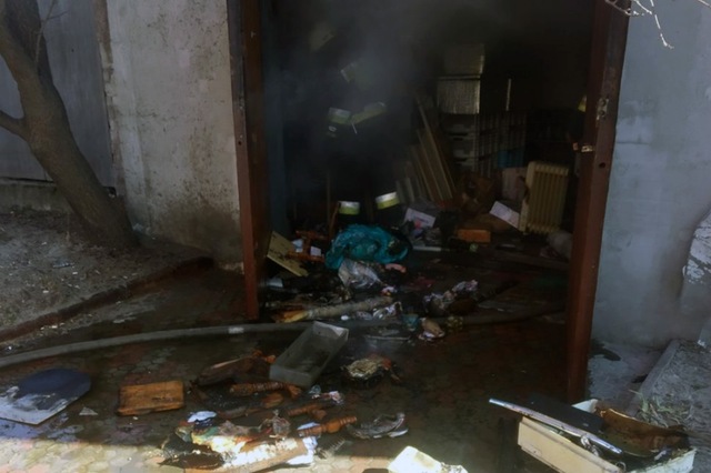 Огнем повреждено старое домашнее имущество в гараже на площади 5м.кв.
