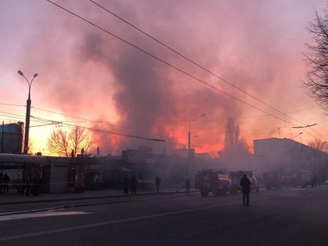 Днем 3 марта в Центрально-Городском районе Кривого Рога загорелись магазины возле Центрального рынка.