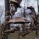 Конструкция дерева и места для сидения выполнены из черного металла, окрашенного под бронзу. Над одной из лавочек склонились два фонаря женского и мужского пола, которые укроют своим зонтиком желающих отдохнуть в этом месте.