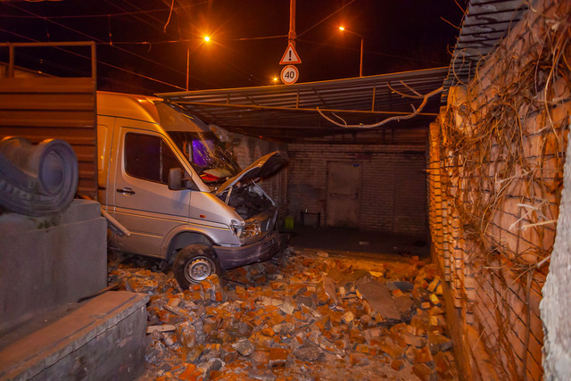 Как рассказали свидетели, микроавтобус ехал по Амурском мосту, когда водитель не справился с управлением, снес отбойник, забор и врезался в стену кафе «Вента». В результате автомобиль снес стену заведения и оказался на его территории.