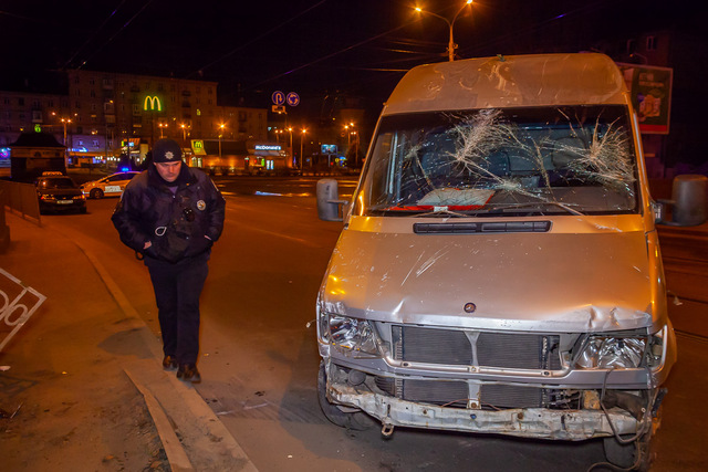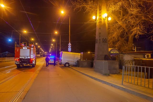 В Днепре на Амурском мосту микроавтобус снес отбойник и врезался в стену кафе