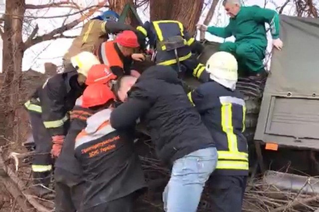 18 марта в Саксаганском районе Кривого Рога у военного грузовика отказали тормоза, водителя пришлось доставать из зажатой кабины.