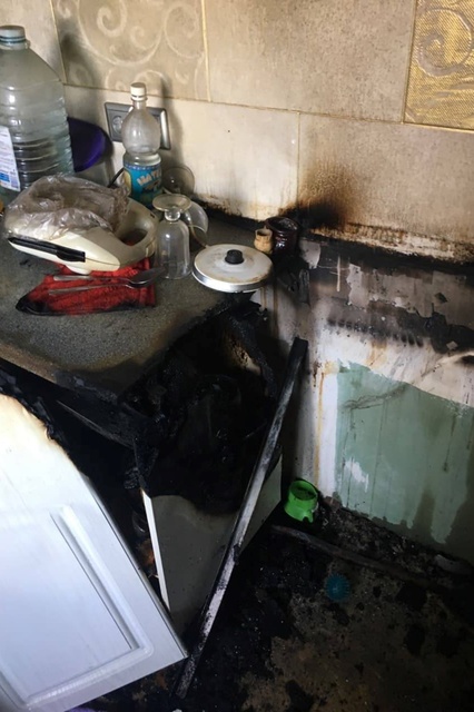 Огнем уничтожено домашнее имущество на кухне на площади 3м.кв.