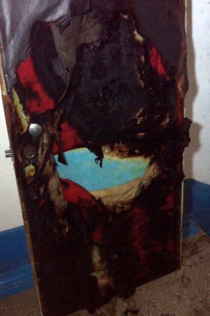Огнем повреждены входные деревянные двери внутри квартиры на площади 2 м2.