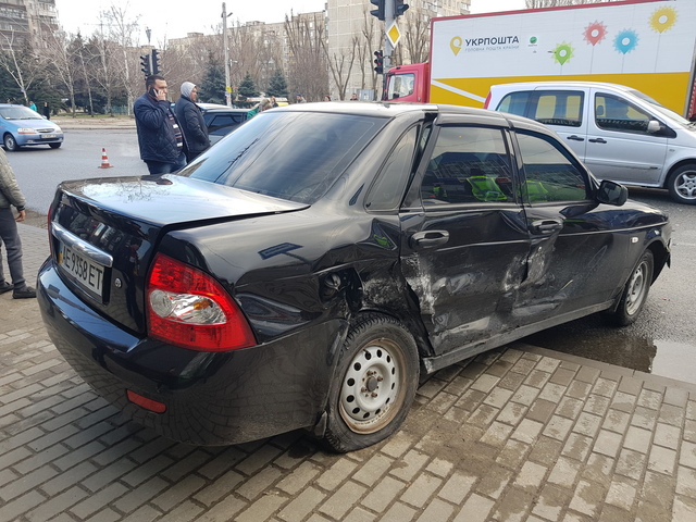 Предварительно известно, что «Приора» ехала по Калиновой со стороны Янтарной в направлении Слобожанского проспекта. На перекрестке водитель решил развернуться, однако выбрал не совсем подходящий момент — в противоположном направлении на свой зелёный сигнал светофора ехала «девятка». Водитель последнего автомобиля не успел среагировать на такой маневр, вследствие чего и произошло столкновение.От удара ВАЗ-2170 закрутило и выбросило на тротуар, по которому в этот момент шли две женщины — обеих зажало между ролетом и задней частью автомобиля. Характер их травм и возраст пока неизвестен — пострадавших сразу же забрала скорая в 6-ю городскую больницу. Туда же госпитализировали и водителей двух автомобилей.