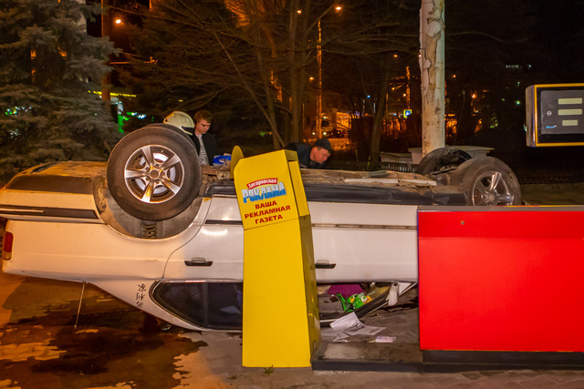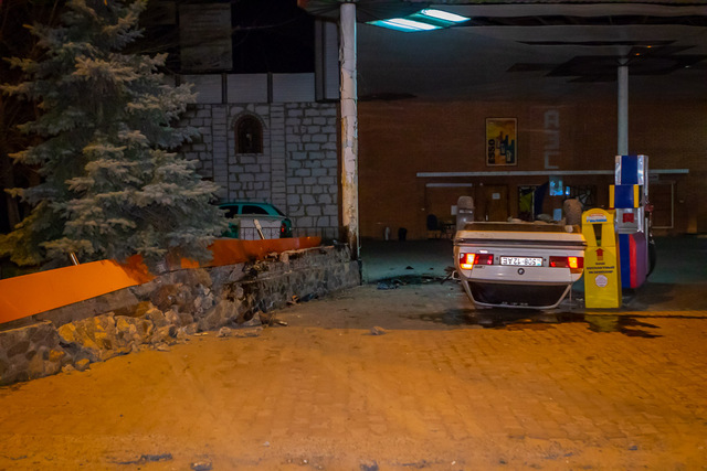 9 апреля, около 1:20, на улице Марии Лисиченко, возле заправки «Восток-Газ», случилось ДТП. Автомобиль BMW въехал в бордюр и перевернулся на заброшенной автозаправочной станции.