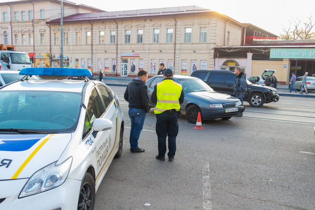В Днепре напротив «Озерки» на трамвайных путях столкнулись Subaru и Opel