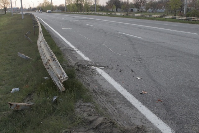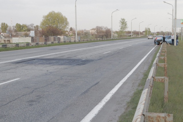 На Полтавском шоссе Chevrolet из-за ямы на дороге врезался в отбойник