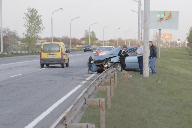В понедельник, 22 апреля, на Полтавском шоссе Chevrolet влетел в яму. Автомобиль моментально закрутило и вынесло на обочину, чудом не задев электроопору.