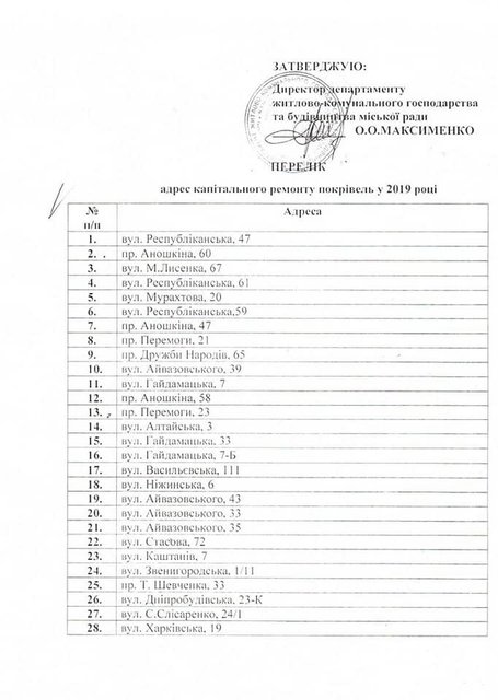 Список адресов капитального ремонта кровли: