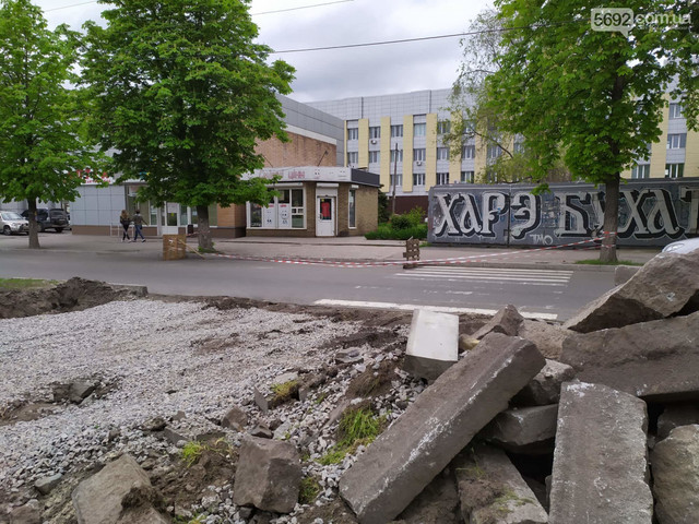 По словам работников подрядной организации, сейчас они делают широкую тротуарную дорожку от больницы до «ПриватБанка», которой так не хватало для комфортного пересечения проспекта в этой районе.