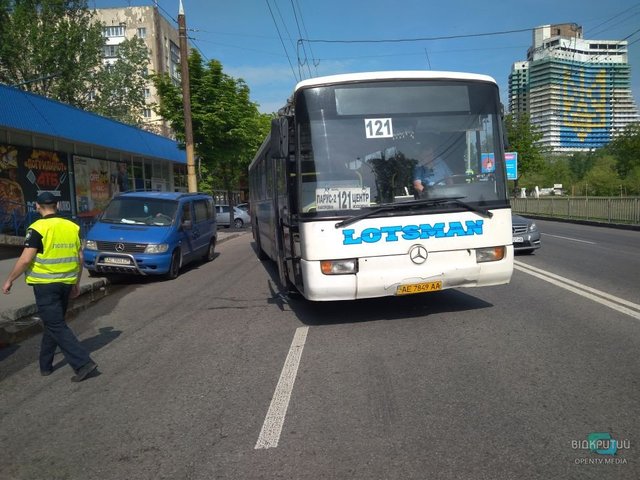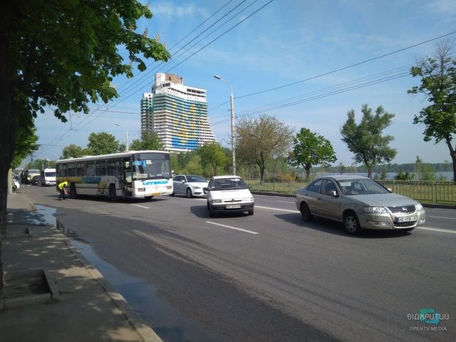3 мая, около 09.30 в Днепре на Сичеславской Набережной возле гостиницы «Парус» столкнулись автомобиль Nissan и автобус маршрута 121.