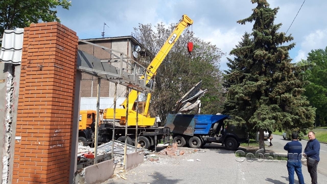Демонтаж МАФа с вывеской "Національна лотерея" проводился по пр. В.Стуса в районе дома № 20 8 мая.