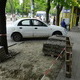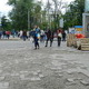 Еще два дня назад была завезена новая плитка – а сегодня бригада рабочих приступила к демонтажу старого изношенного покрытия.