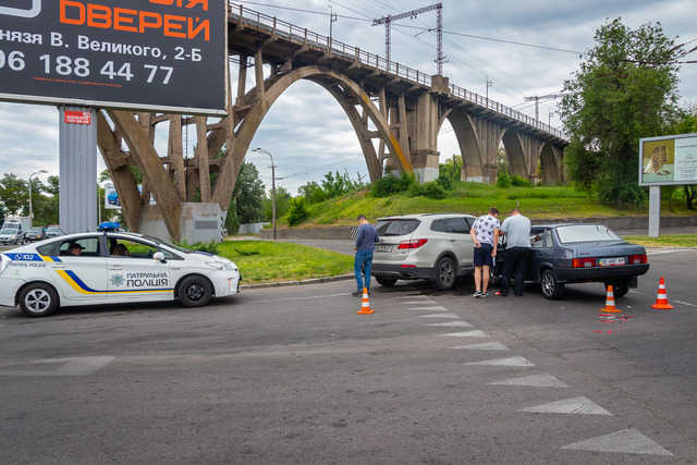 21 мая около 9:20 на улице Сичеславская Набережная, возле Мерефо-Херсонского моста случилось ДТП. Столкнулись ВАЗ и Hyundai.