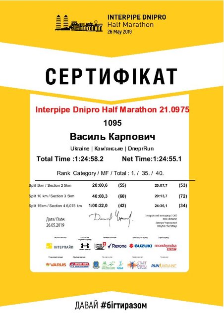 На старт главной дистанции - 21 км 97,5 метра - вышли 1350 участников. Среди них и каменской спортсмен из КСЦ «Днепровец», чемпион мира и Европы по легкой атлетике Василий Карпович.