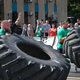 В соревнованиях силачи выполняли пять различных упражнений, среди которых самым зрелищным и любимым у зрителей является кантование шин весом в 360 килограммов.