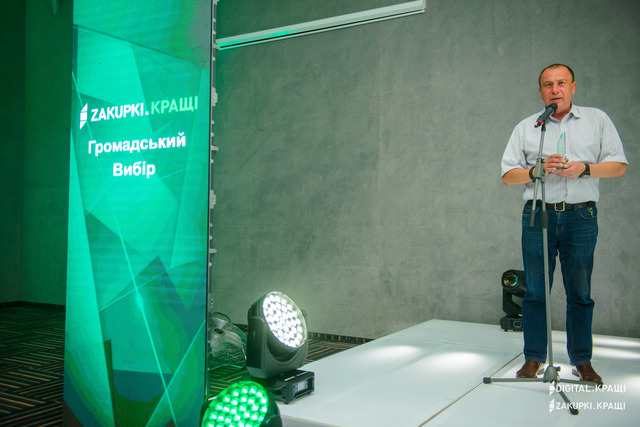 «Дуже приємно отримати Премію у колі дійсних лідерів, які просувають зміни у системі публічних закупівель. Також хочу відмітити, що в залі присутні представники тих переможців, у яких є надійні та впевнені команди закупівельників, що і стало підставою перемоги у національному конкурсі. бажаю подальшого удосконалення, міцного здоров’я та прозорих закупівель».Окрім категорії «Громадський вибір», переможців визначали у категоріях «Експертний вибір» та «Найкращі результати». Як і минулого року, кращих обирала спеціальна комісія. До неї увійшли фахівці моніторингового порталу DOZORRO та представники торговельного майданчика Zakupki.Prom.ua. Експерти оцінювали номінантів за кількома критеріями та використовували дані публічного модулю аналітики BI.ProZorro.