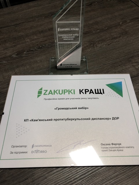 Комунальне підприємство «Кам’янський протитуберкульозний диспансер» Дніпропетровської обласної ради» перемогло у категорії «Громадський вибір: Закупівлі».