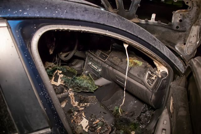 Спасателям потребовалось около получаса, чтобы полностью потушить загоревшуюся иномарку. За это время пламя уничтожило весь моторный отсек и сильно повредило салон авто. «Пострадал» и припаркованный рядом Renault. У автомобиля расплавились фары и номера.