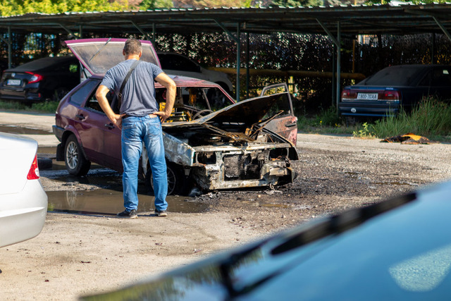 25 июня, около 8:30, на улице Любарского случился пожар. На стоянке загорелся автомобиль ВАЗ.