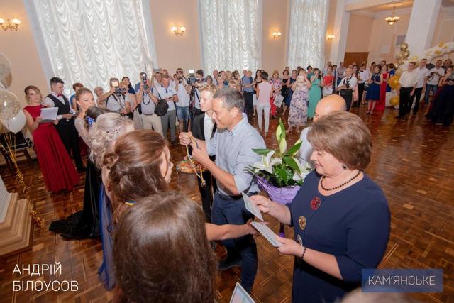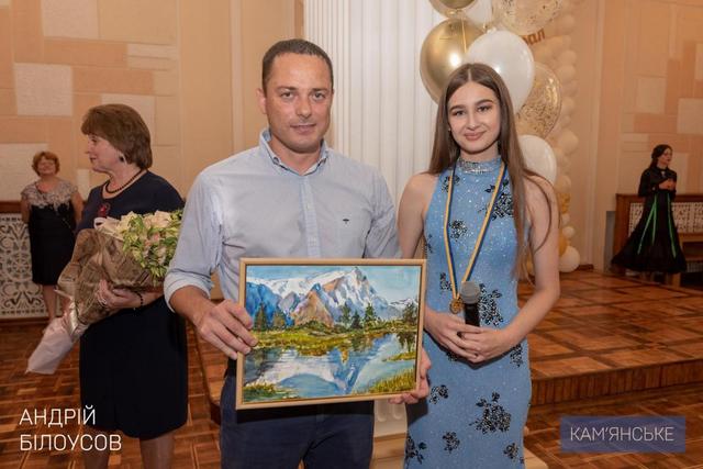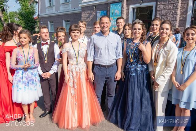 Медалі та пам'ятні подарунки випускникам вручав Кам'янський міський голова Андрій Білоусов.